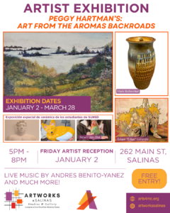 The evening also includes a special exhibition titled Ceramics, That’s Fire, showcasing ceramic works by students from Salinas High School and Everett Alvarez High School from the Salinas Union High School District. This exhibit honors the dedication, thoughtfulness, and determination required to transform clay from concept to creation.