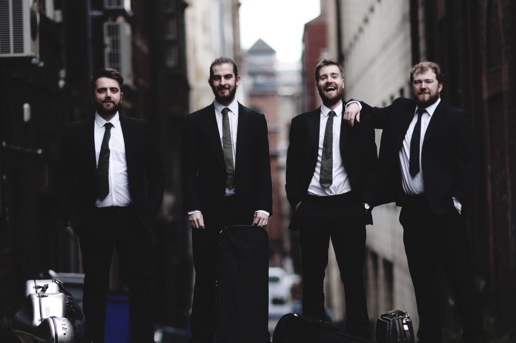The Quartet comprises four close friends who grew up playing folk and classical music together in youth orchestras and music schools across Scotland. The group officially began in 2010 at the Royal Conservatoire of Scotland, where its founding members met as postgraduate students. In 2011, the Maxwell Quartet was named Residency Artists for Enterprise Music Scotland 2011- 2013, which saw several acclaimed concert tours over their two-year tenure. Performing widely across Scotland, the quartet established a reputation for delighting audiences with their “unaffected enthusiasm” (North Highland Times) and their “panache and conviction” (Strathearn Herald). The quartet has since held residencies at Oxford University, Perth Concert Hall, and many chamber music festivals across the UK, including Loch Shiel’s festival in the west highlands of Scotland, and a new self-curated concert series at Guardswell Farm in Perthshire. The quartet currently holds the position of Associate Artist at the Royal Conservatoire of Scotland in Glasgow, and at Music at Paxton Festival in the Scottish Borders. Passionate about collaborating with musicians and other art forms, the quartet has worked with a global roster of artists and institutions, including theatre company Cryptic, installation artists Wintour’s Leap, the Royal Ballet School, soul duo Lunir, folk duo Chris Stout & Catriona MacKay, cinematographer Herman Kolgen, and many more. In addition to a busy concert diary, the quartet regularly features in broadcasts for BBC Radio 3 and BBC Radio Scotland and regularly gives schools workshops and concerts for children.