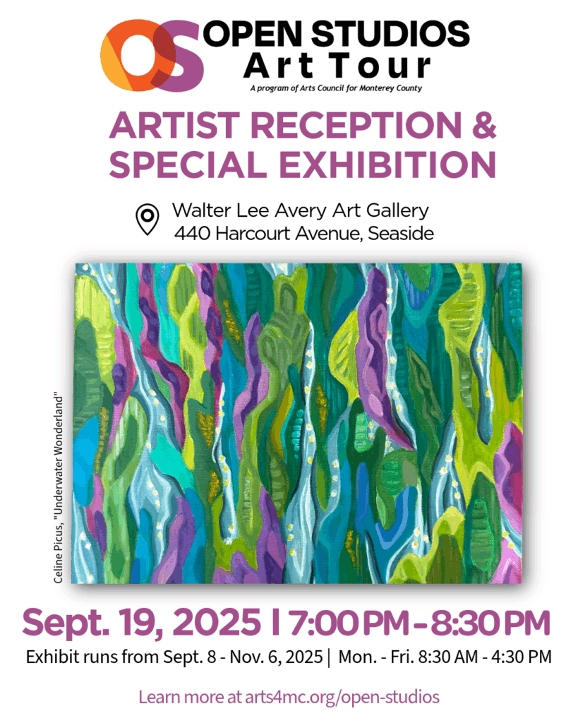 Open Studios Art Tour is a free, self-guided event over two weekends [October 11–12 & 18–19, 2025]. This year, we’re pleased to also include a Special Exhibition featuring OSAT participating artists at the Walter Lee Avery Gallery (inside Seaside City Hall) — a curated showcase running from Sept. 8 – Nov. 6 and this Artist Reception.