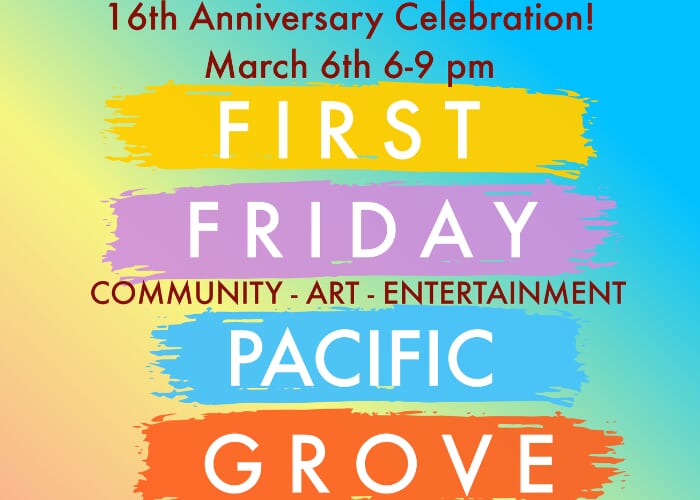 Join us for an evening of Entertainment, Enlightenment, Enjoyment and Celebrating 16 years of First Friday Pacific Grove (2010-2026). Stop by the PG Art Center for 4 Gala Openings, PG Museum of Natural History & enjoy the museum "after hours", Enjoy Loud & Local at the PG Meetinghouse, Katherine Lavin Band at Monarch Pub, Enjoy […]