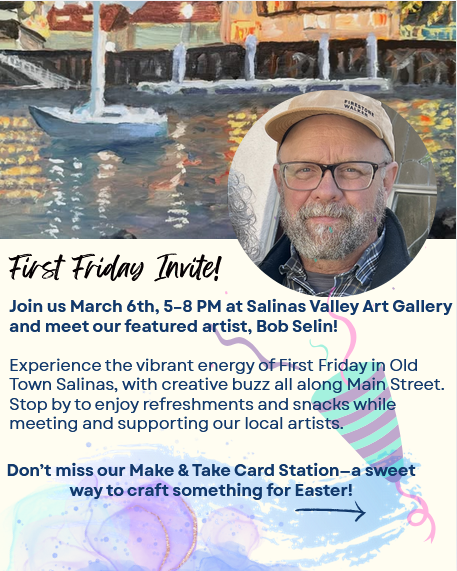 Join us for First Friday and meet Featured Local Artist Bob Selin, whose paintings are known for bold color, expressive brushwork, and a touch of whimsy shaped by a lifelong love of art. Enjoy the vibrant energy of First Friday in Old Town Salinas, with music, open shops, and creative buzz all along Main Street. […]