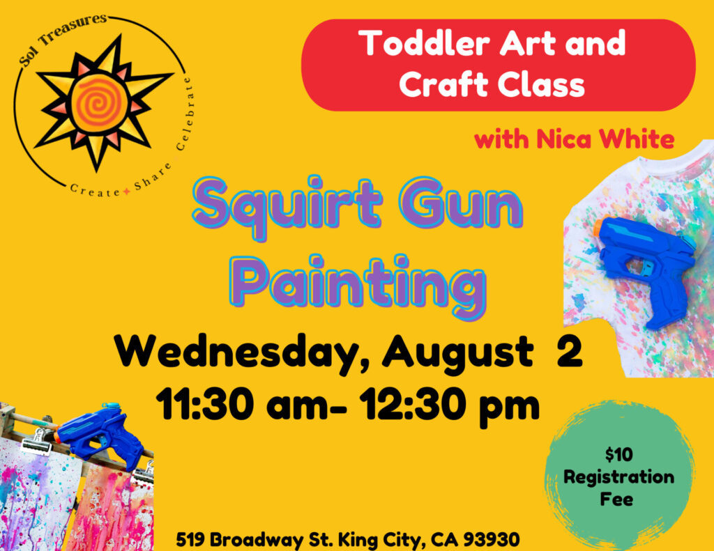 Join our instructor and artist Nica White in this fun squirt gun painting class! Your toddler will enjoy creating a masterpiece made with lots of fun in the sun! You […]