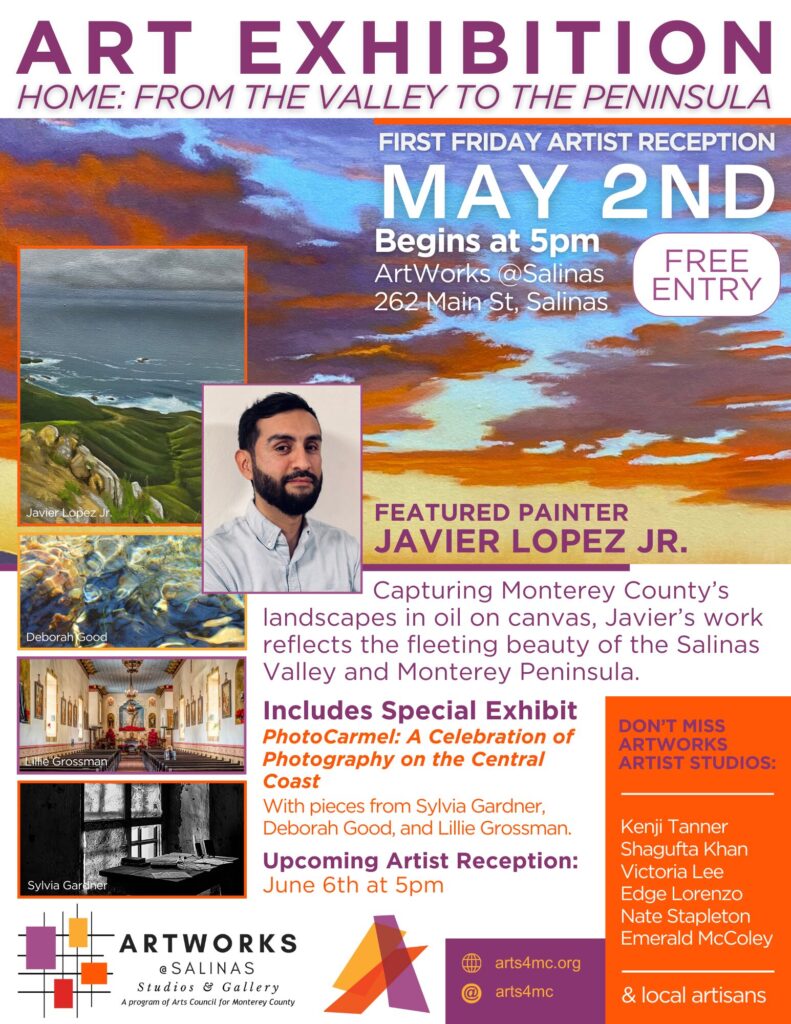 Join us on Friday, May 2, 2025, at 5:00 PM at ArtWorks @Salinas (262 Main Street, Salinas) for a special Artist Reception with local artist Javier Lopez Jr. Experience his […]