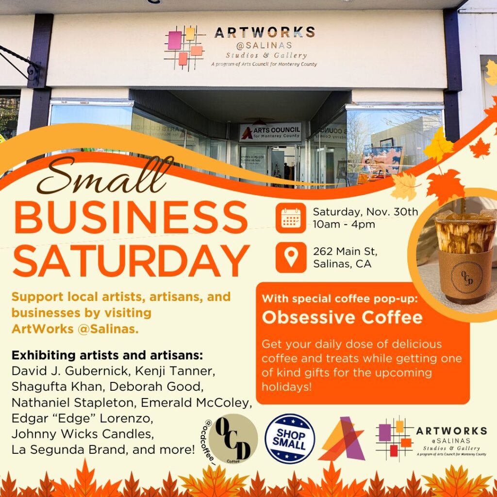 Join us for Shop Small Saturday on November 30th, 10 AM – 4 PM at #ArtWorksSalinas! ???? Discover unique, one-of-a-kind gifts from talented local artists and artisans like David J. […]