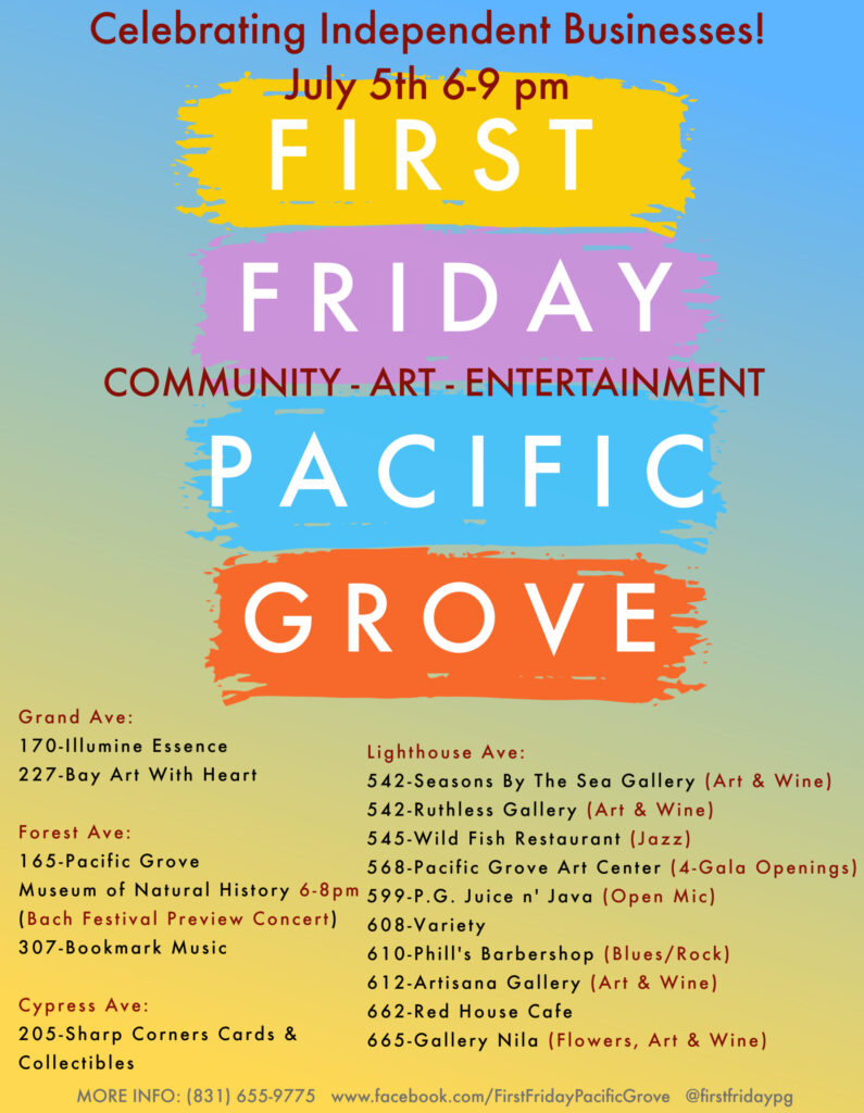 Join us for our upcoming First Friday Pacific Grove Celebrating Independent Businesses!!! July 5, 2024 from 6-9pm! Enjoy Community, Live Music, Art Openings, Artists, Great Food and fun for the […]