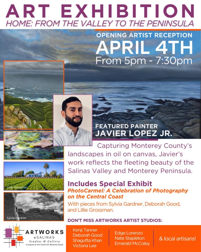 Join us on Friday, April 4, 2025, at 5:00 PM at ArtWorks @Salinas (262 Main Street, Salinas) for a special Artist Reception. Experience the debut of local artist Javier Lopez […]