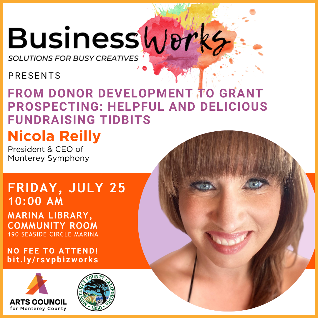 Join us on Friday, July 25 at 10 AM for a BusinessWorks session with Nicola Reilly, President and CEO of the Monterey Symphony. Learn how to strengthen donor relationships, identify new prospects, and turn casual supporters into loyal advocates. As arts funding shifts, individual donors are more important than ever. This conversational session offers tips […]